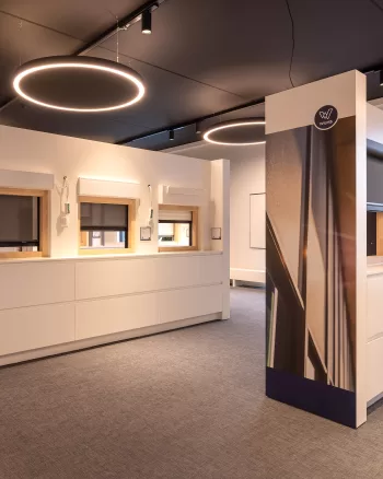 Voor Wilms, specialist in rolluiken, zonwering en ventilatie, verzorgden wij de volledige visuele aankleding van hun Experience Center in Meerhout. Van productie tot plaatsing namen wij alles in handen. Het doel was helder: een ruimte creëren waar beleving en merkidentiteit naadloos samenvloeien.