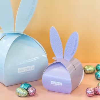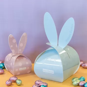 Onze paasgeschenken personaliseren we volledig in jouw huisstijl. Van de bunny box met 60 chocolade eitjes tot de little bunny box met 20 eitjes. Stijlvol geprint, origineel verpakt en helemaal op maat van jouw merk.